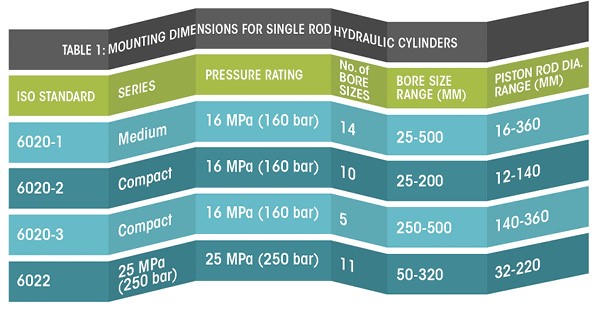 There are four main ISO standards for mounting dimensions related to hydraulic cylinders. Their nomenclature and other information are listed in Table 1.